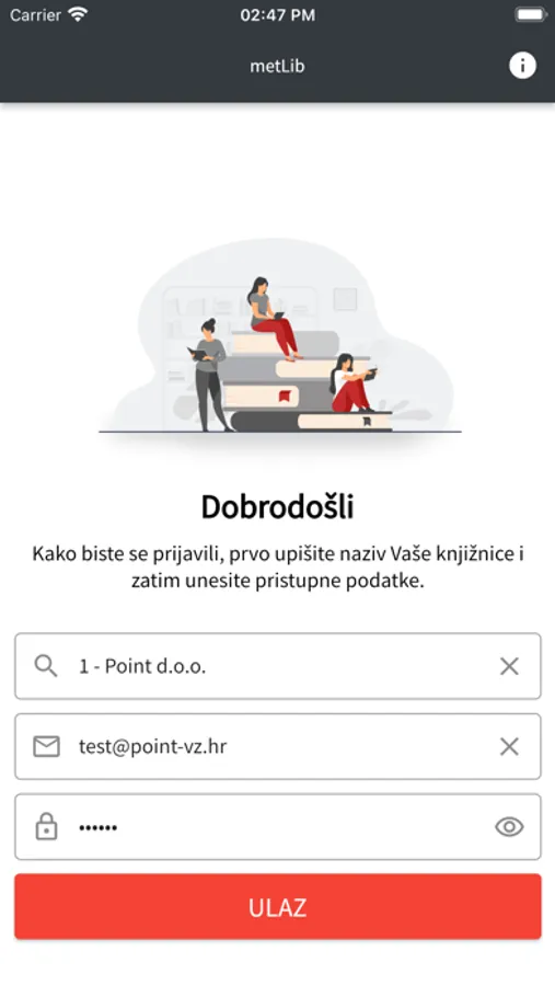 Aplikacija je namijenjena korisnicima knjižnice koji nakon uspješne prijave u aplikaciju mogu pretraživati katalog knjižnice, vidjeti svoju digitalnu iskaznicu i svoj korisnički profil unutar kojega se nalazi prikaz knjiga koje se trenutno čitaju, arhiva posudbe, lista želja, rezervacije, preporuke. Mogu pregledavati tekuće novosti i događanja u knjižnici ukoliko knjižnica iste objavljuje kroz aplikaciju Metel. Ukoliko knjižnica posjeduje e-Knjige, korisnicima je također dostupno pretraživanje, pregledavanje i posudba eKnjiga (PDF, ePub).