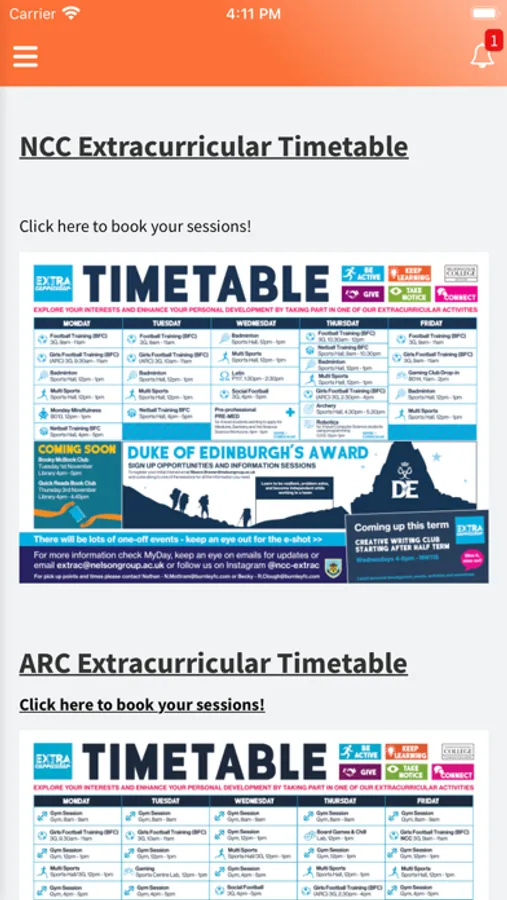 Extracurricular timetable