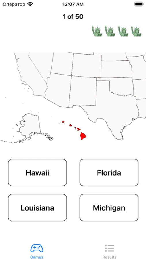 You will be given a highlighted state on the map and 4 answers. Think twice before answering, if you make 4 mistakes you will have to start from the beginning. Are you ready?
