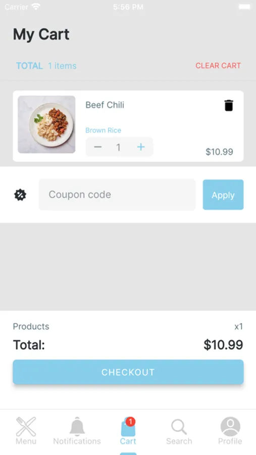 - Simply order meals with the option to filter your choices by category.