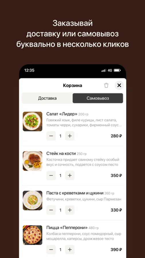 — Сделать заказ быстро и с мгновенным подтверждением через приложение;