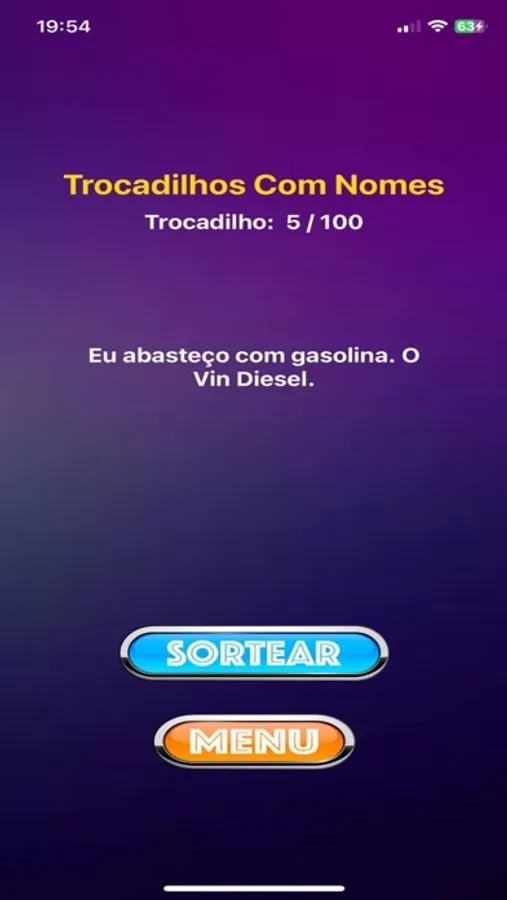 Contém jogos de perguntas e respostas engraçadas que podem ser jogados com seus amigos ou apenas para seu divertimento próprio, a pessoa escolhe uma pergunta.e tenta adivinhar, confira as respostas caso não souber.