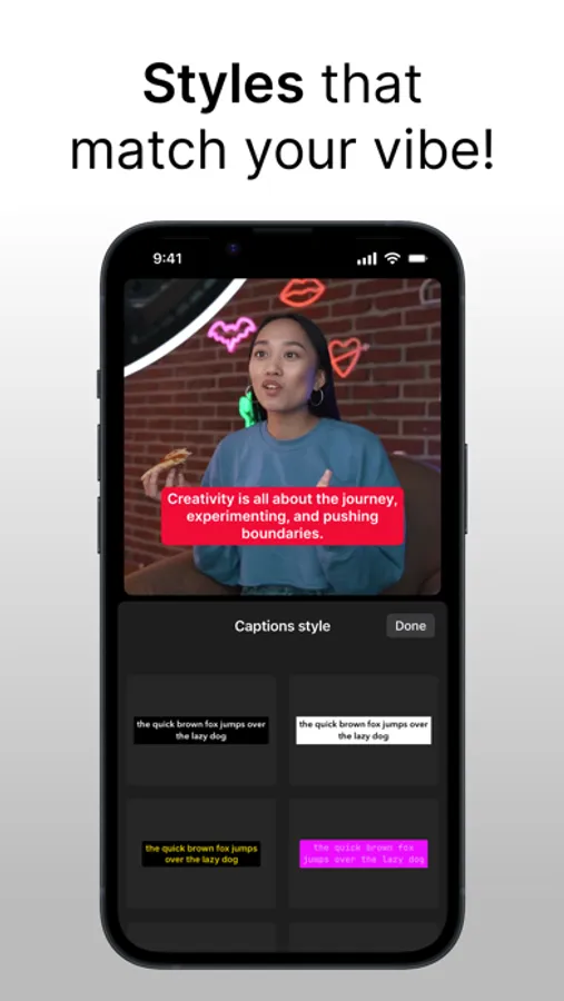 With Captivate, you can easily add accurate subtitles to your talking videos. But that's not all. Once you have your transcription, you can easily keep the most exciting parts of your video by editing the text, and the app will automatically remove the corresponding video section. It's like magic!