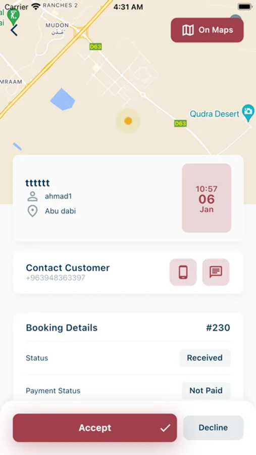 After booking a service, you can track the status of the booking by toggling the booking tab, also you can cancel the booking if the provider is not accepted it. you can confirm if the provider start working and finish his work to calculate the duration of service.