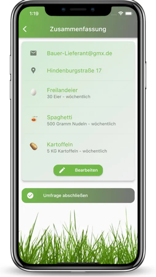 Mit dieser App helfen Sie mir, die Einkäufe bei den Bauern besser zu Planen, um einen Überschuss oder Mangel von Lebensmittel vorzubeugen.