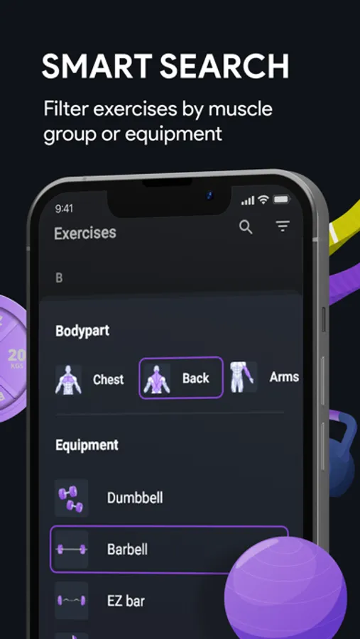 Exercise list - A comprehensive list of exercises, including strength, cardio, and flexibility exercises. Select a workout or create your own custom weight lifting routine.