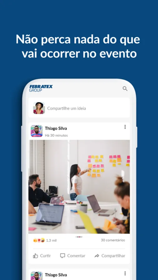 Com o aplicativo da Febratex Group, você tem acesso a uma rede social exclusiva dos principais eventos têxteis, pode fazer novos contatos, enviar perguntas aos palestrantes, trocar mensagens com outros participantes e fazer networking. Além disso, você pode consultar a programação, avaliar conteúdos, dar feedback e responder quizzes. Utilize o APP e aproveite ao máximo os recursos.