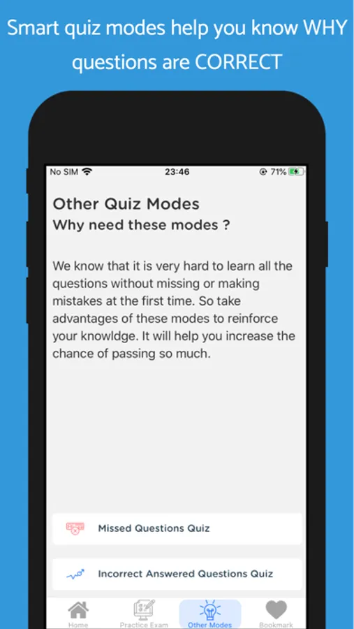 4.Examination mode will help you take test like a real exam. So you will be more confident.