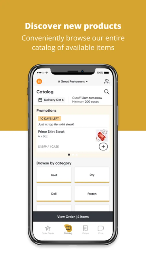 Our mobile app lets you search our complete product catalog, manage and update your ordering guide, and buy what you need at the moment you need it. It’s part of our commitment to giving you an ordering experience you’ll love.