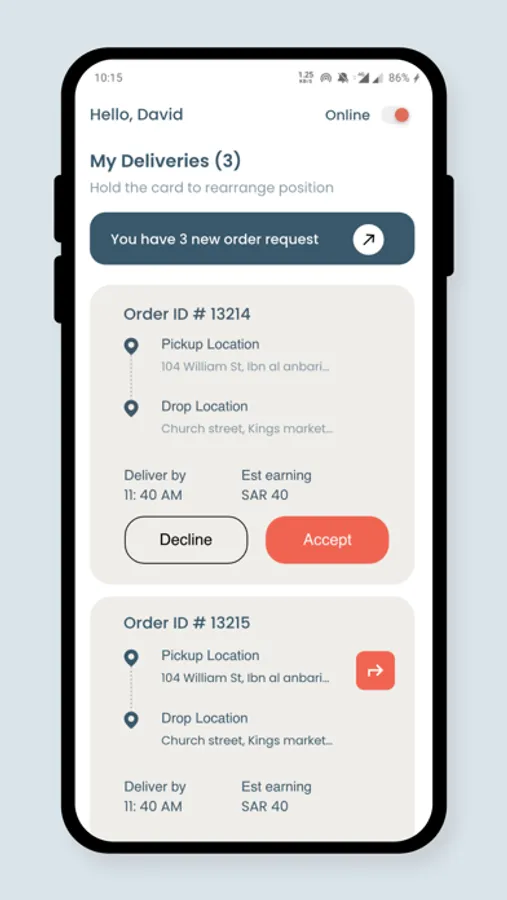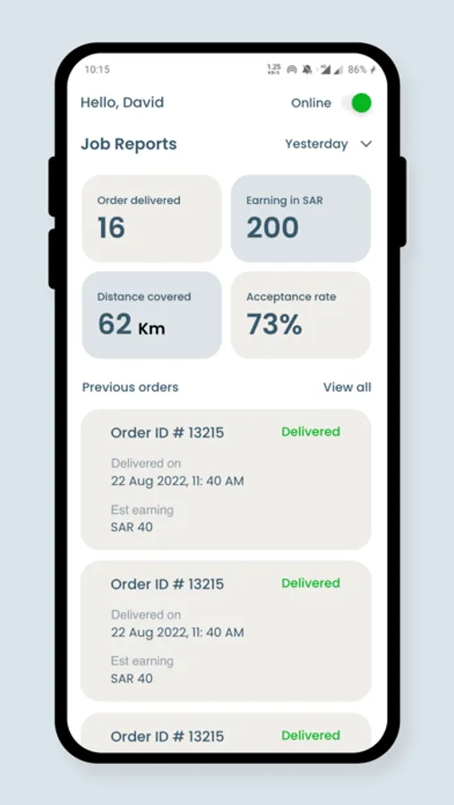 Bloss driver app helps drivers to track his orders and change the status of the orders so that customers can be notified about his orders.