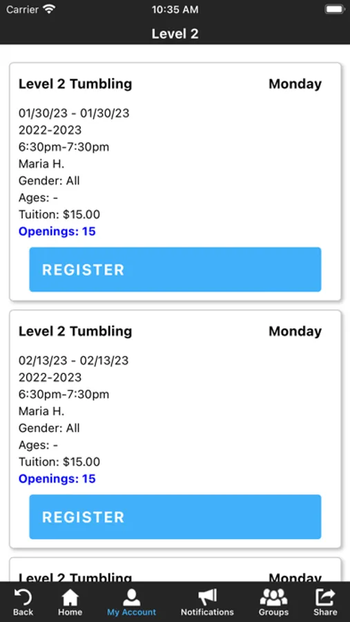 - Have a class in mind? Search by program, level, day, and time. You can register or even put yourself on a wait list.