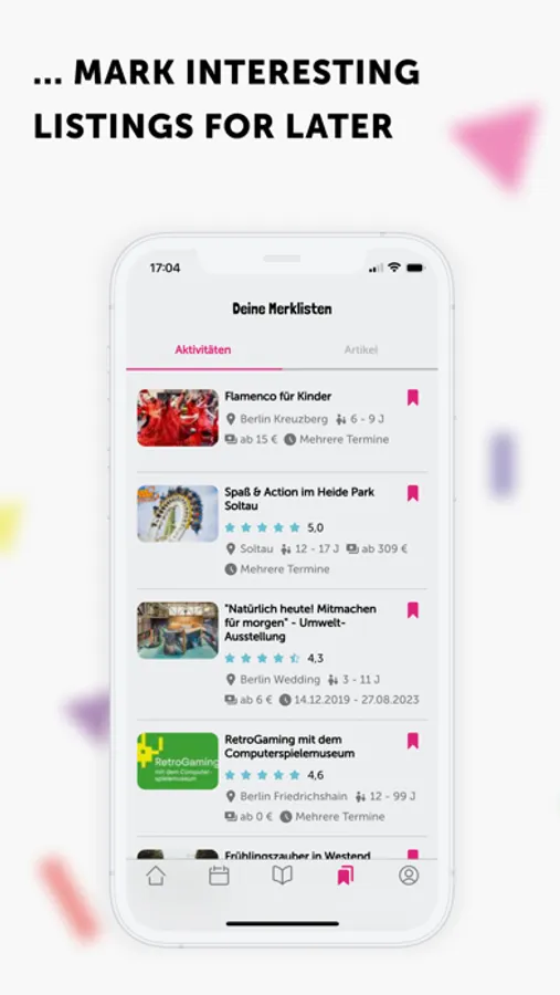 Save your family time simply in your own wishlist and keep the coolest events, children's courses, and inspiring ideas at your fingertips with just one click.
