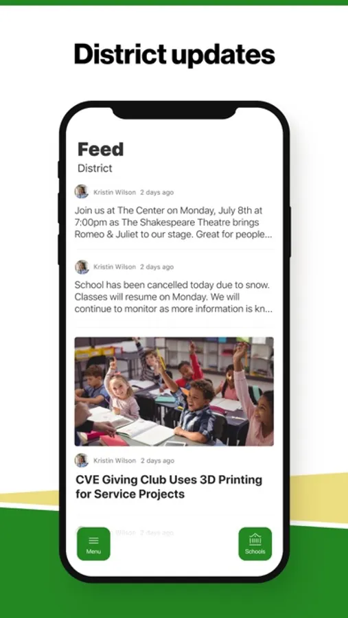 In the Live Feed is where you'll find updates from the administration about what's going on in the district right now. Whether that's celebrating a student's success, or reminding you about an upcoming deadline.