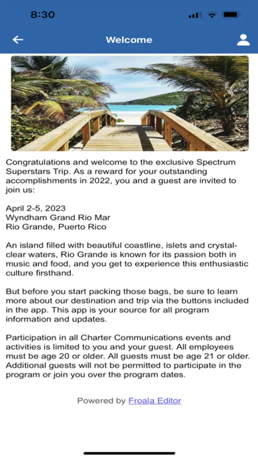 Welcome to the Spectrum Superstars – Rio Mar EventAPP! This app will be your tool for up-to-date information, agendas, communications and much more!