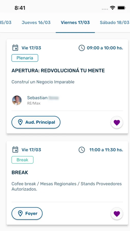 - Selecciona las charlas favoritos.