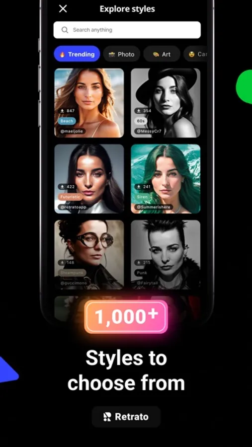 Unleash your creativity with 1000+ unique AI-generated styles. Whether you want to make a big impression, or stand out on social media, Retrato delivers high-quality, professional portraits every time.