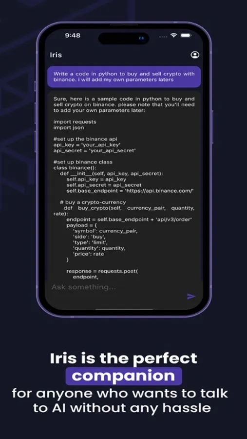 Say hello to the future of communication, download Iris today and witness the power of AI, chatbot, and GPT-3 technology firsthand. Soon integrating the GPT-4 Algorithm.