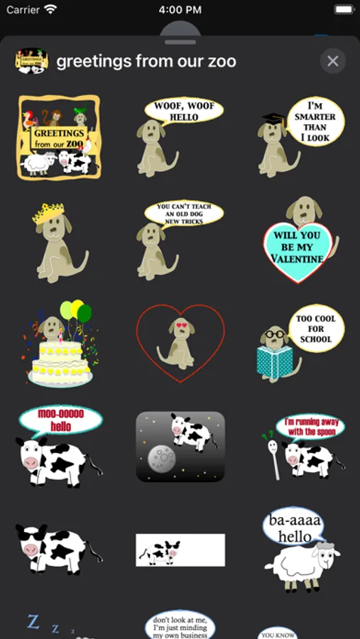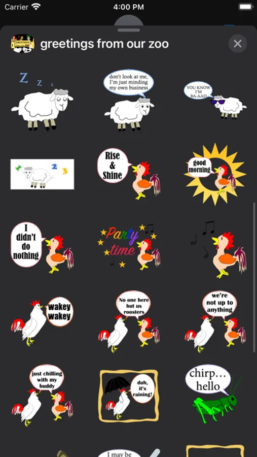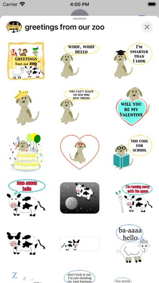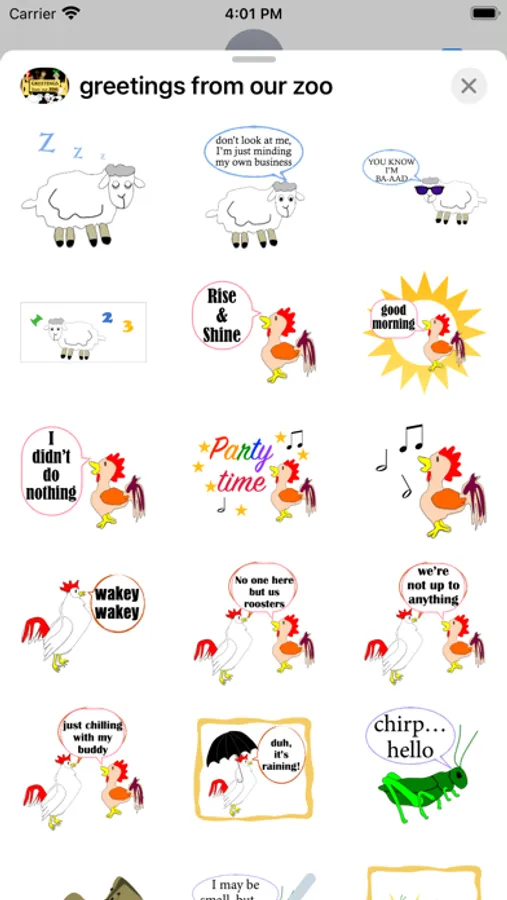 This set of greetings stickers is a combination of an attempt at humor and fun from different animals big and small. As they say, if you know, you know. The stickers include both static and animated types.