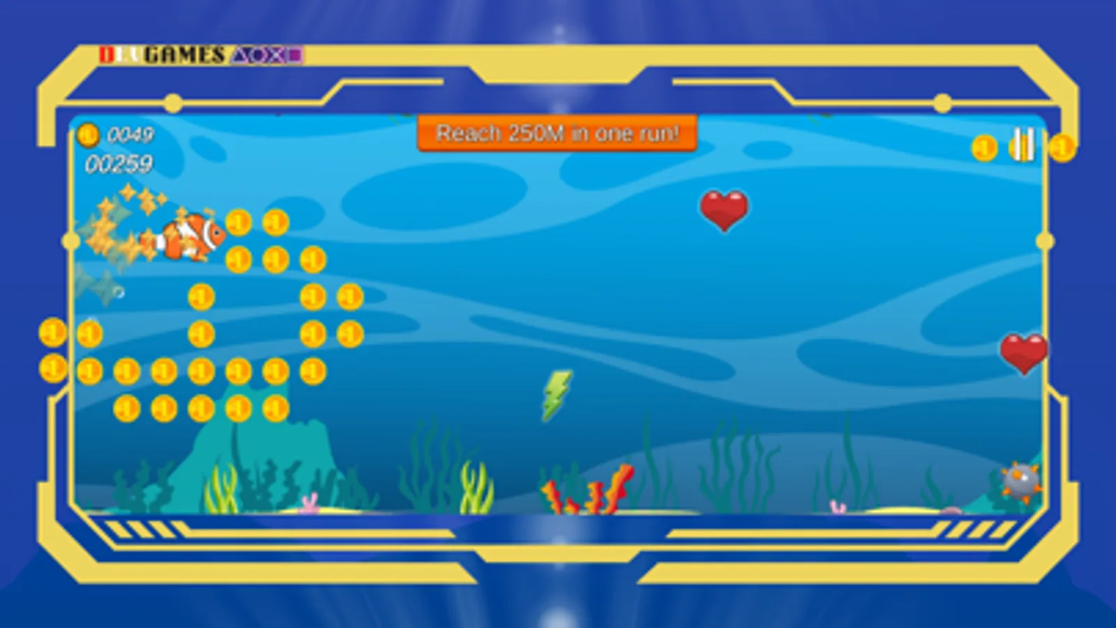 As you swim through the underwater world, you'll be faced with challenges that will test your skills and reflexes. Every obstacle you encounter will require quick thinking and precise movements in order to avoid it and continue on your journey. But don't worry, along the way, you'll find hearts that will give you an extra life, and energy that will give you the boost you need to swim even faster. These valuable resources will help you overcome the hardships and reach new heights.