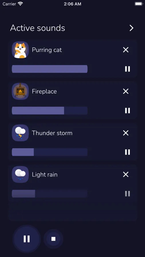Using our app can help you stay focused during daily routine or relaxing activities like meditation or time before sleep. Select ambiance by your taste with over 40 different sounds to choose from. Transport yourself to the peacefulness of a waterfall or long-distance train. Or maybe you’d prefer a calm evening near the fireplace with a purring cat on your knees?