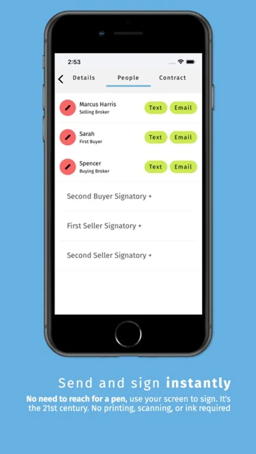 Send Contracts - text or email contracts to all parties with a quick tap. They can review your offer right from the link on any device.