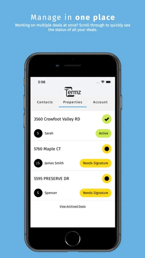 Sign Contracts - everyone involved can sign or counter right from their phone. Get it done fast with Termz.
