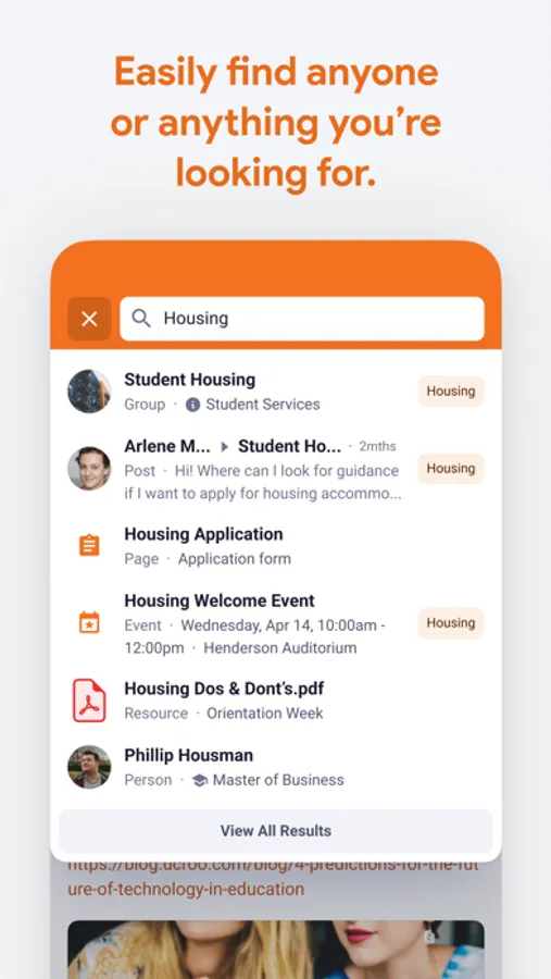 - Search for instructors, staff, peers, systems, groups, posts, resources, and more