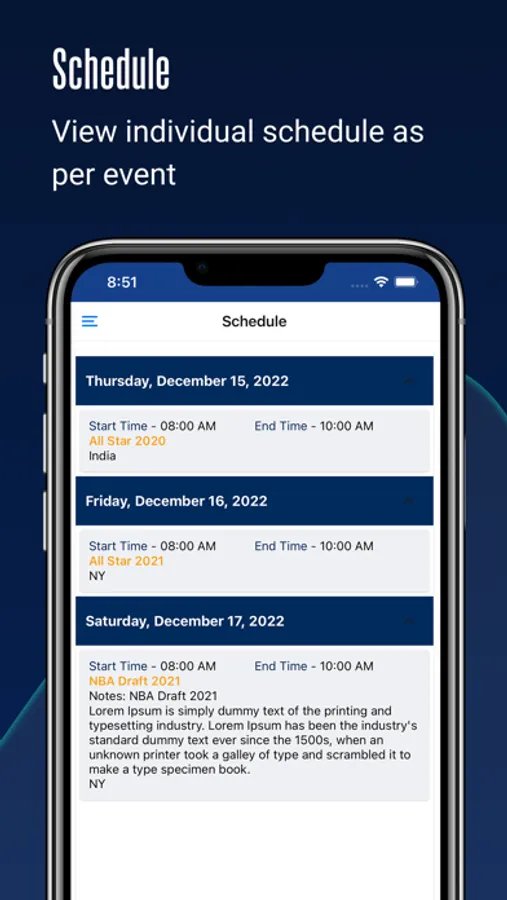 LETS GO is a system developed internally by the NBA to capture and share information for our participants at league events. Through this system, users will be able to input information for different modules such as event registration, hotel needs, flight details, outfitting sizes, and more. Additionally, the NBA will be able to share schedules, documents, and notifications with our event participants directly through LETS GO.