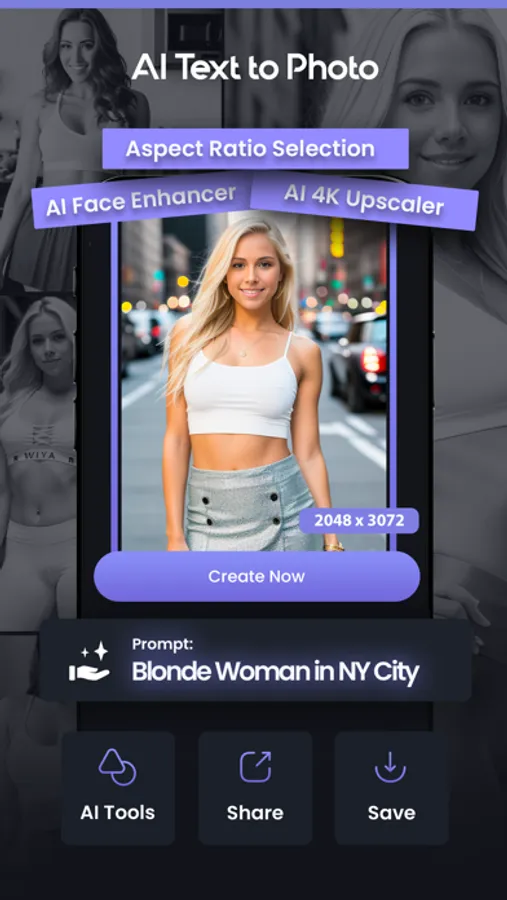 With AI text to photo function of this app, realistic images can be generated.