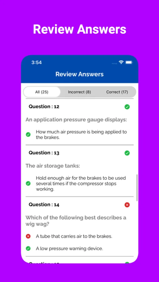 In addition, the app provides a list of weak questions based on practice tests on CDL Prep Test.