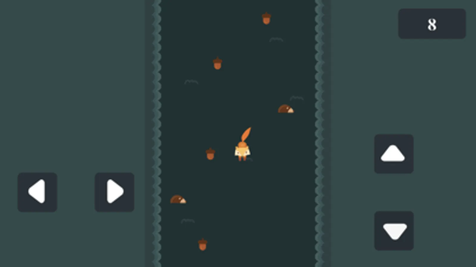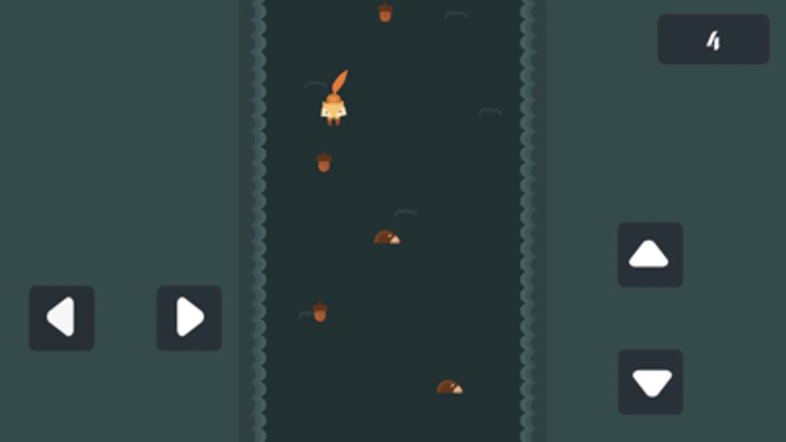 Take the squirrel left to right to go fast or slow down to collect chestnuts and avoid colliding with hedgehogs crossing the road.