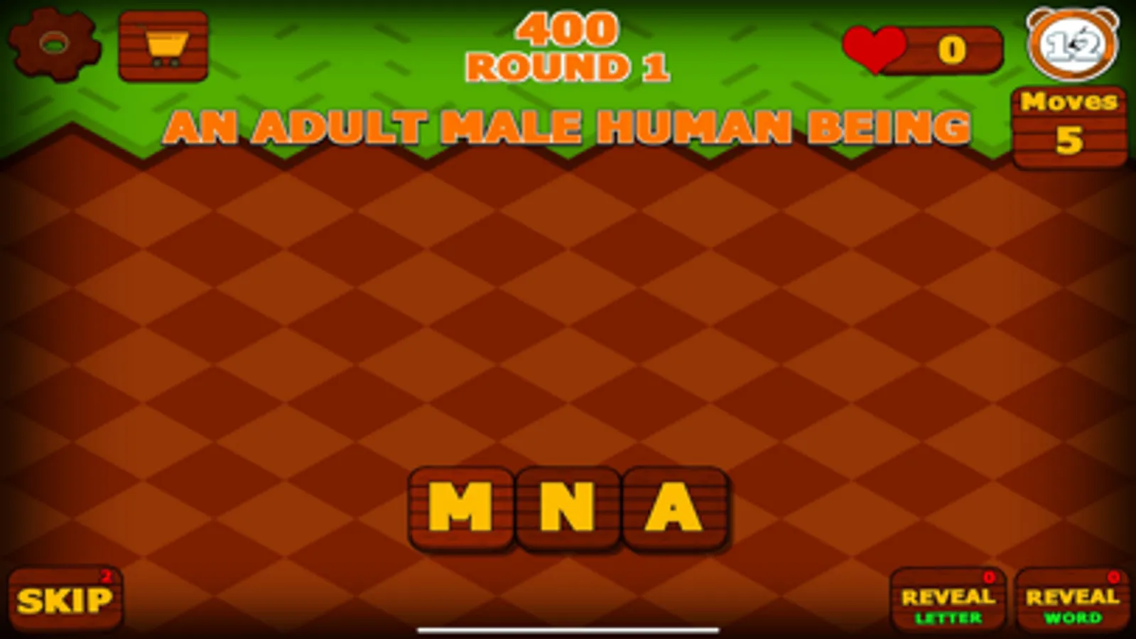 a definition of a word on the screen and scrambled letters below. Arrange the letters based on the word definition on the screen for the answer. Guess as many words as you can per round to get high score!