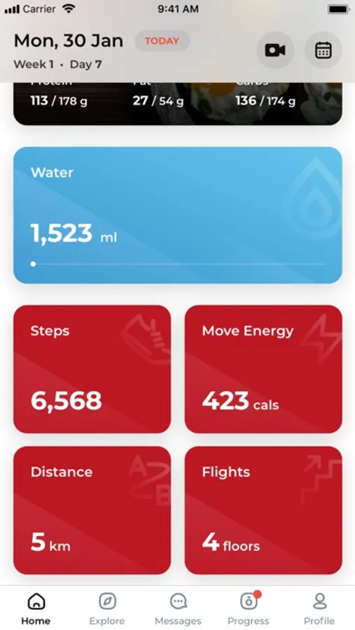 The app integrates with Apple Health to show your daily activity - distance, steps, active energy,