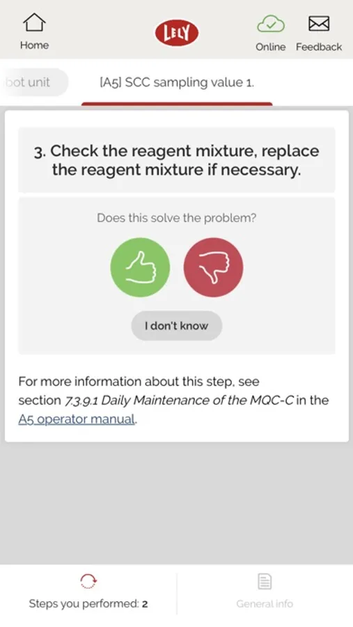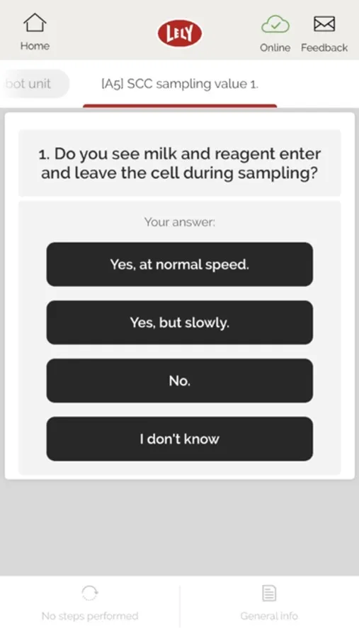 The sequence of steps will be influenced by the users and using the feedback buttons will help Lely to include more useful content.