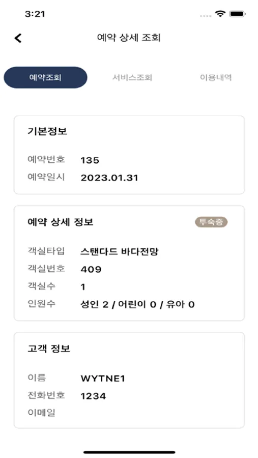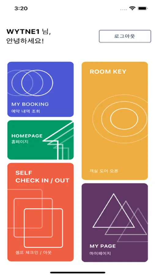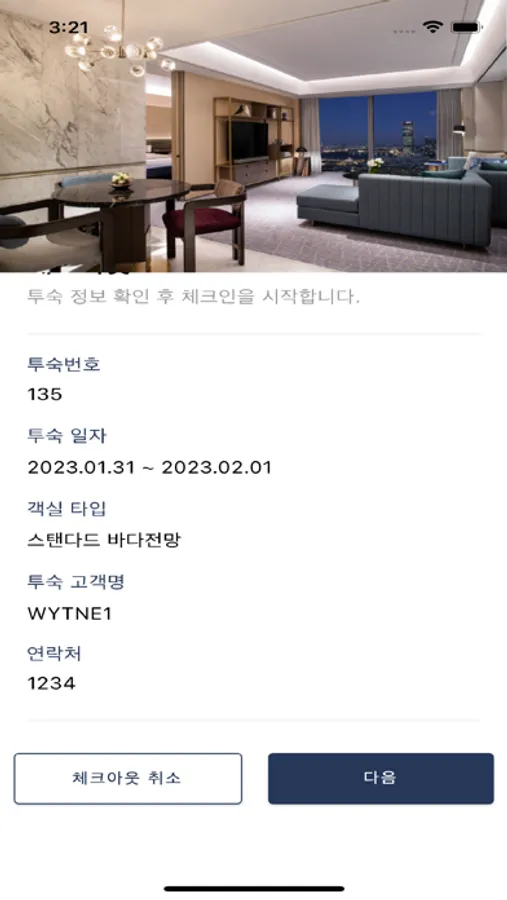 호텔 예약 정보 및 객실키 오픈을 할 수 있습니다.