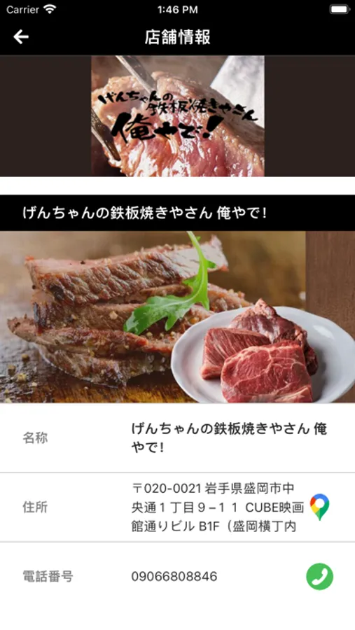 店舗の情報がすぐ確認できます。電話もアイコンをタップで使用できます!
