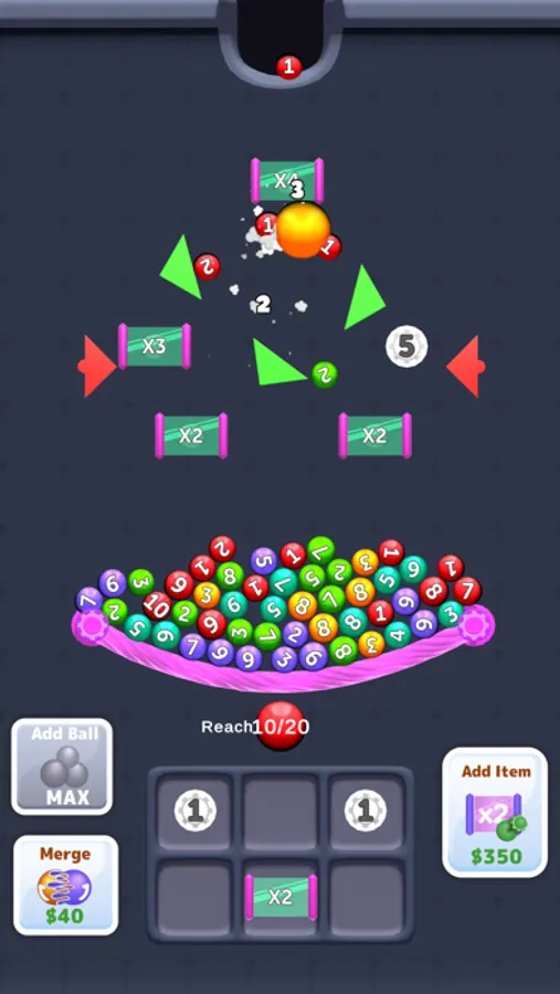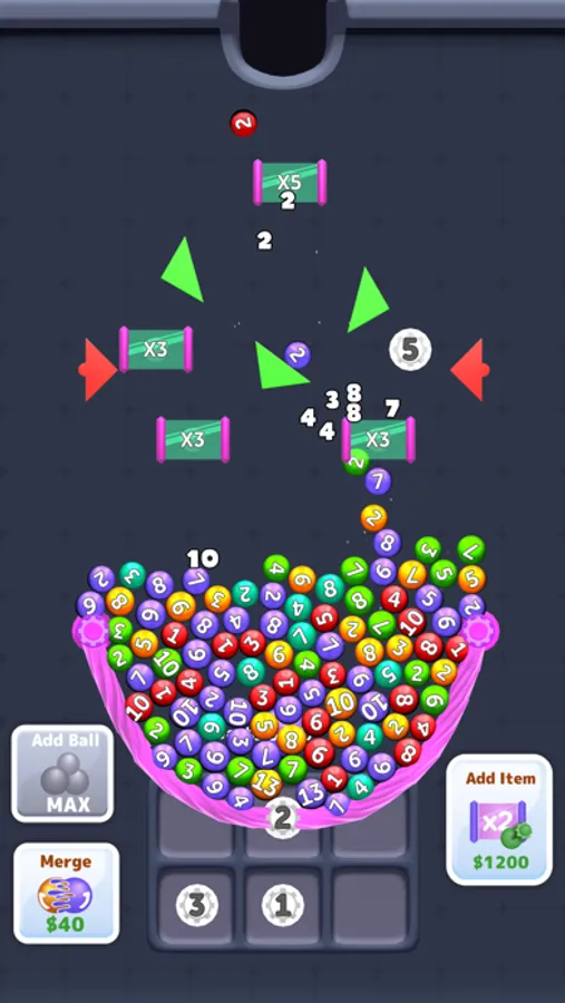 Do not stop until the whole screen is filled with colorful balls throughout the game. If you pass the moving balls through the multiplier gates, you will multiply the number of balls.