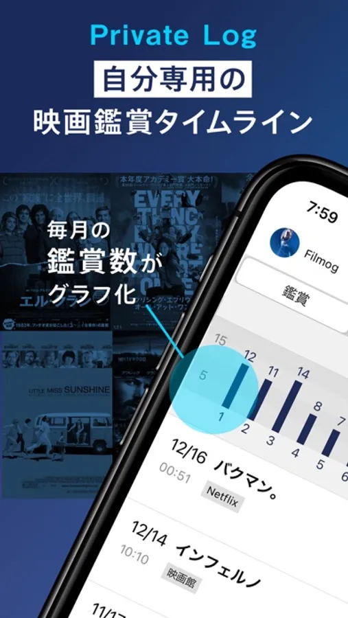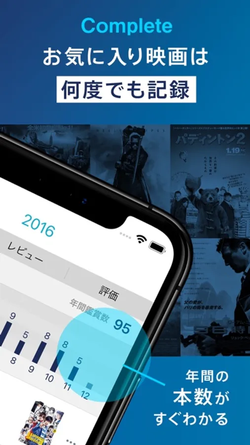 映画館で観たあの映画やベッドで寝ながらスマホで観たあの映画まで、いつどこで観た映画かをFilmogに全部記録。1年間に観た映画の本数や鑑賞傾向の把握に役立ちます。映画鑑賞で人生を豊かに、Filmogはさらに進化していきます。