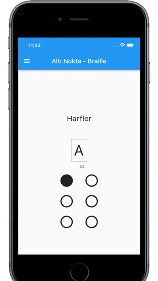 Altı Nokta - Braille öğrenmek için ücretsiz uygulama. Çift taraflı uygulamadır. İsterseniz noktaların karşılığını görürsünüz. İsterseniz harf yazıp nokta karşılığını.