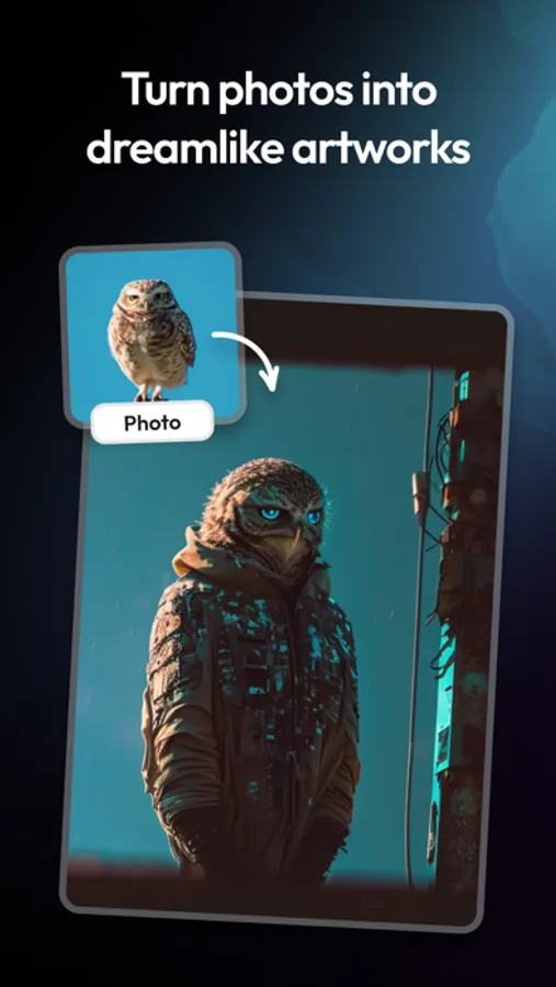 Transform your photos into stunning works of art with DreamArt AI, use the artificial intelligence to create breathtaking images. Whether you're an artist or a social media user looking for more style, DreamArt's powerful AI technology allows you to easily turn any photo into something extraordinary.