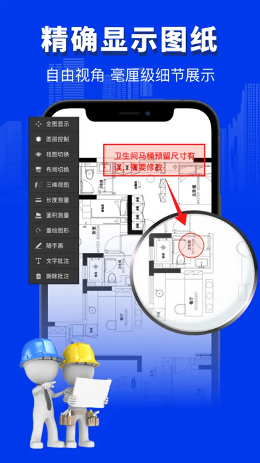 2.自由视角:精确显示图纸内容,自由移动视角;