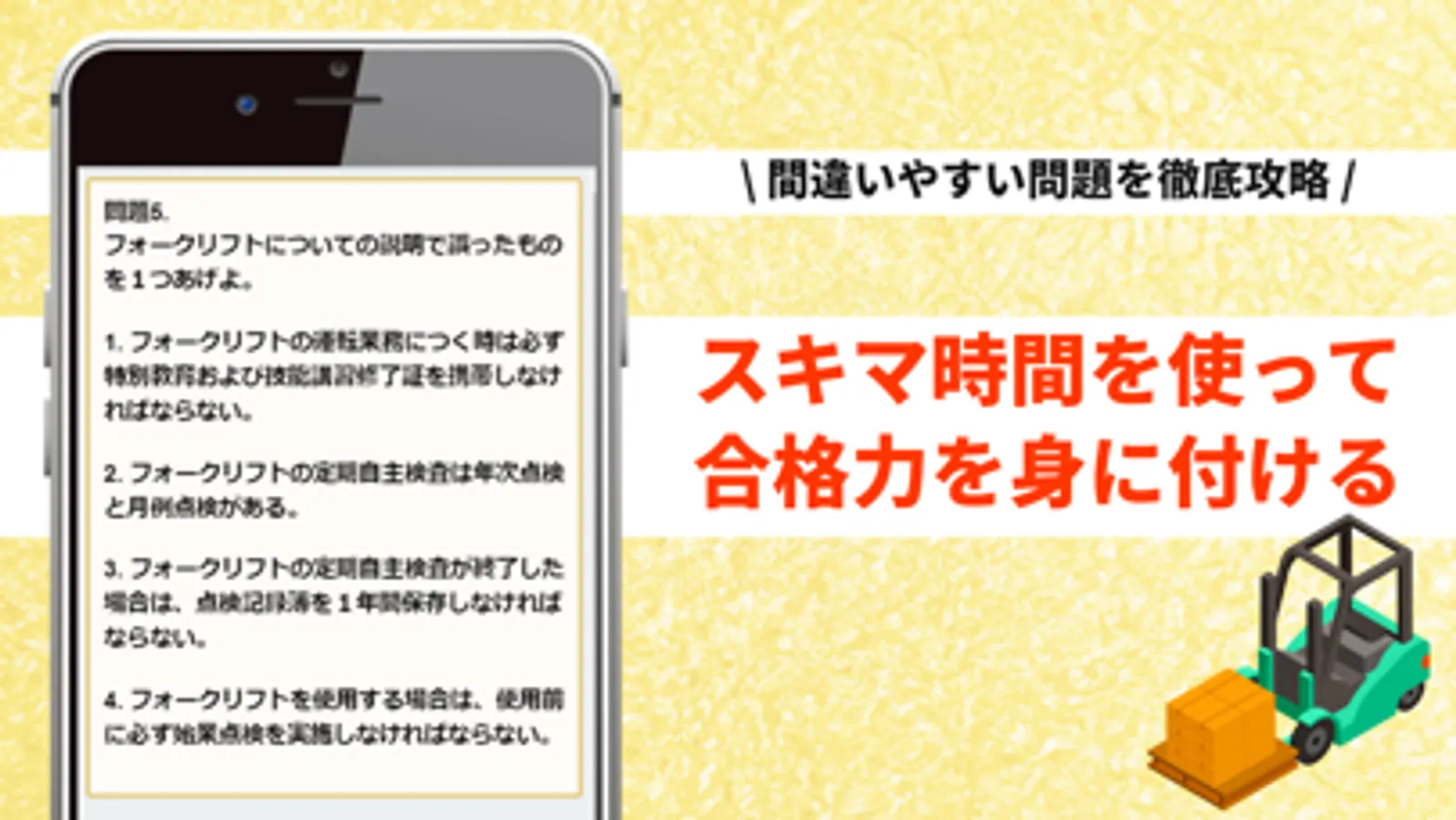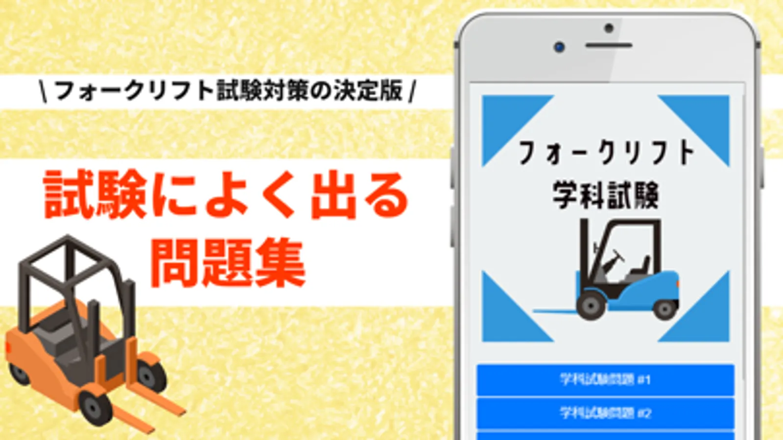 フォークリフト学科試験の受験対策問題集アプリです。