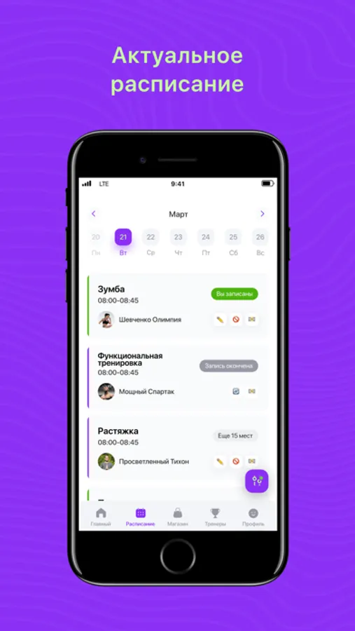 Описание в маркете: Мобильное приложение для клиентов фитнес-клубов и спортивных студий