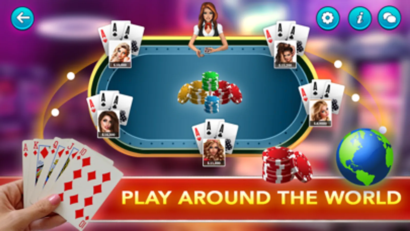 - Beautiful game screen and table, feel the authentic look of Teen Patti Indian card games