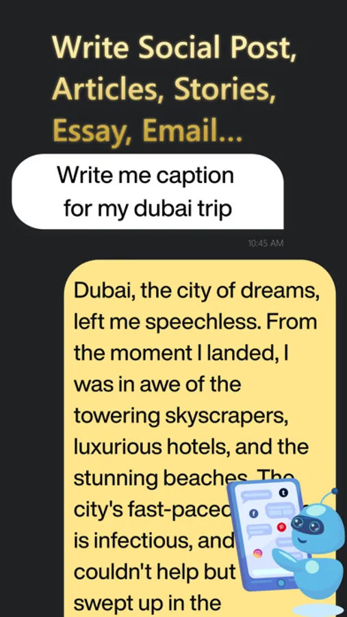 Welcome to the world of AI. Our app can write anything you need to. Just select category and write your problem statement.