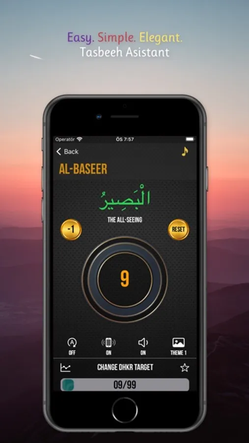 Thanks to the app's theme support, you can customize the background as you wish, and you can perform your dhikr in a more peaceful environment with background sounds. You can also easily access your favorite names with the favorites feature and track your dhikr with the statistics features.