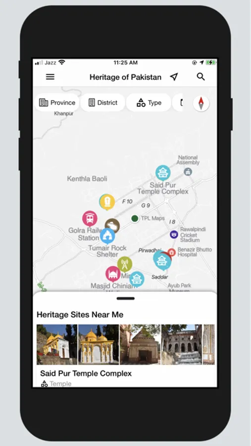 This application is made by Department of Archaeology & Museum (DOAM), in which all the heritage sites of Pakistan are visible on map along with the location of site. In addition to this there is a description of each site along with the archaeological details including Lat/Long of each site. If a person opens the app from any where in Pakistan, he/she can see any of the heritage sites in Pakistan. A direction and navigation of each site is also available in app by using a location based services of TPL Maps. Sites can be filter out by the Province, District/City, Type and Period. It will show all the available information to the user as well as the nearest site with respect to the current location. This app is an initiative by DOAM to facilitate users specially tourist or researchers of archaeology and historical sites.