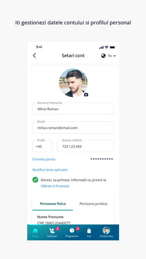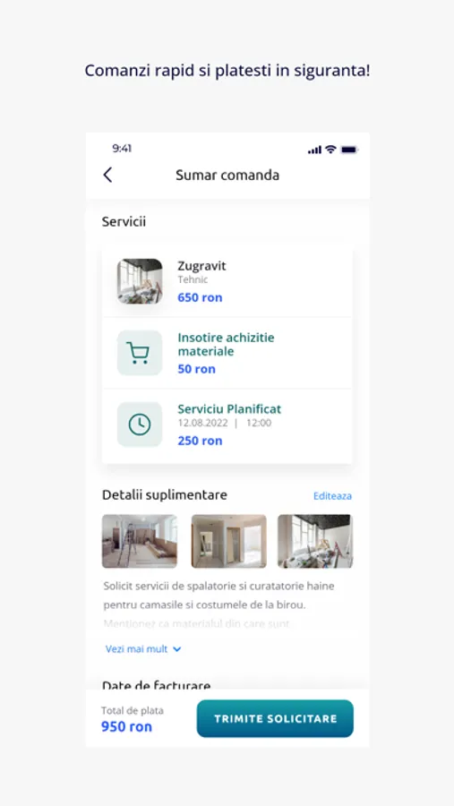 Plasează comenzile în câteva secunde, urmărește fiecare etapă a procesului și programează-ți serviciile conform agendei tale.