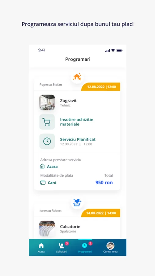 Experimentează comoditatea serviciilor prestate la domicliu prin aplicația noastră inovatoare! Indiferent dacă ai nevoie de curățenie impecabilă, reparații profesioniste sau îngrijire personala, avem totul acoperit.