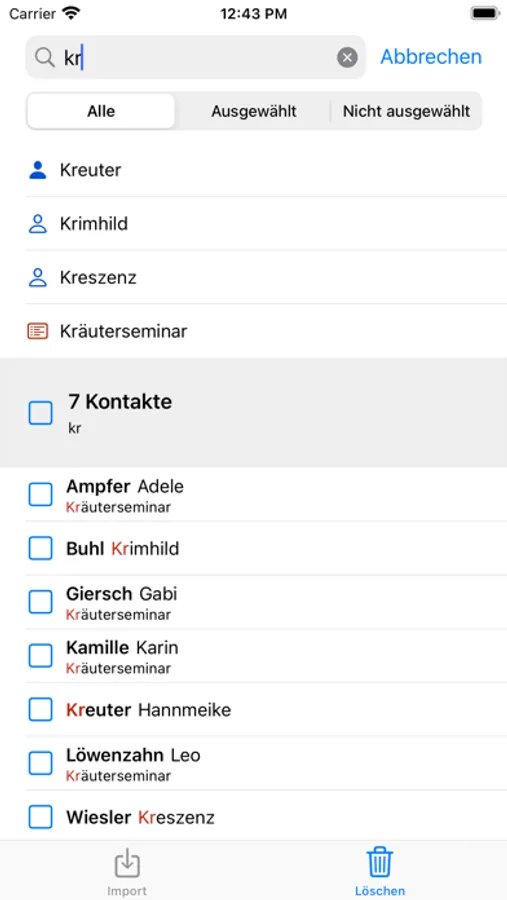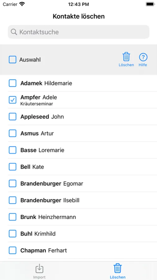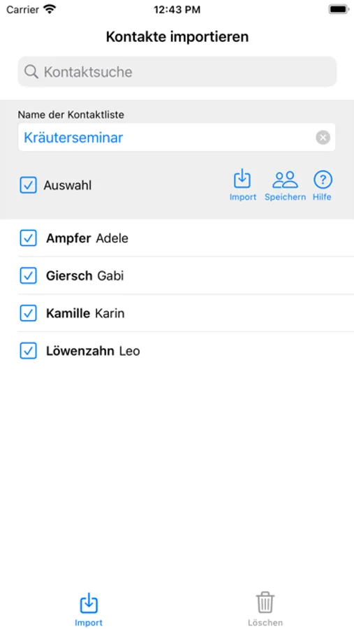 Leider bieten die mobilen Geräte von Apple (iPhone, iPad) keine Möglichkeit, Kontakte aus vorhandenen Tabellen und Listen heraus zu importieren. Die App ermöglicht es dem Nutzer, Kontaktlisten im CSV-Format in das Adressbuch des Gerätes zu importieren. Die Liste der importierten Kontakten kann mit einem Namen versehen und bei Bedarf auch später wieder mit Hilfe der App gelöscht werden.